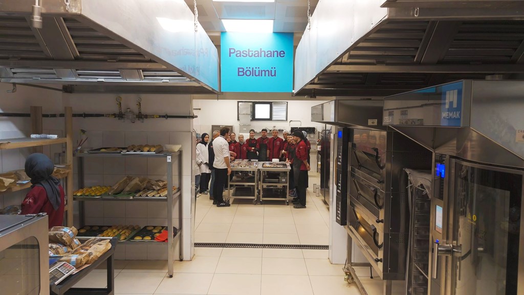Students in the Culinary Arts Programme of the Hotel, Restaurant and Catering Services Department at our Vocational School have the opportunity to apply the knowledge they gain in theoretical classes at the TOGÜ Kitchen Training and Production Facility. The facility offers a wide range of activities, including pastry and bread production, sourdough and gluten-free products, and chocolate production. Students gain experience working in a real production kitchen with professional equipment, learning work discipline and industry standards first-hand.